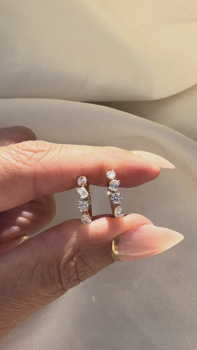 Meet your new everyday obsession. Featuring an artful assortment of diamonds shapes, the confetti diamond huggies elevate jeans-and-a-tee just as easily as a night out.
